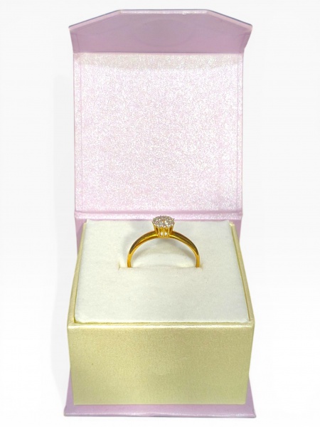 • JOIA, um (1) anel, dito CHUVEIRO, confeccionado em OURO AMARELO, contrastado 750, incrustado por pedrarias translucidas, aro 26 e peso total bruto 1,7g.