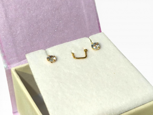• BIJUTERIA FINA, par (2) de brincos para orelha furada, confeccionados em metal dourado, incrustado por cristal facetado, um deles sem tarraxa, medindo 0,4cm.